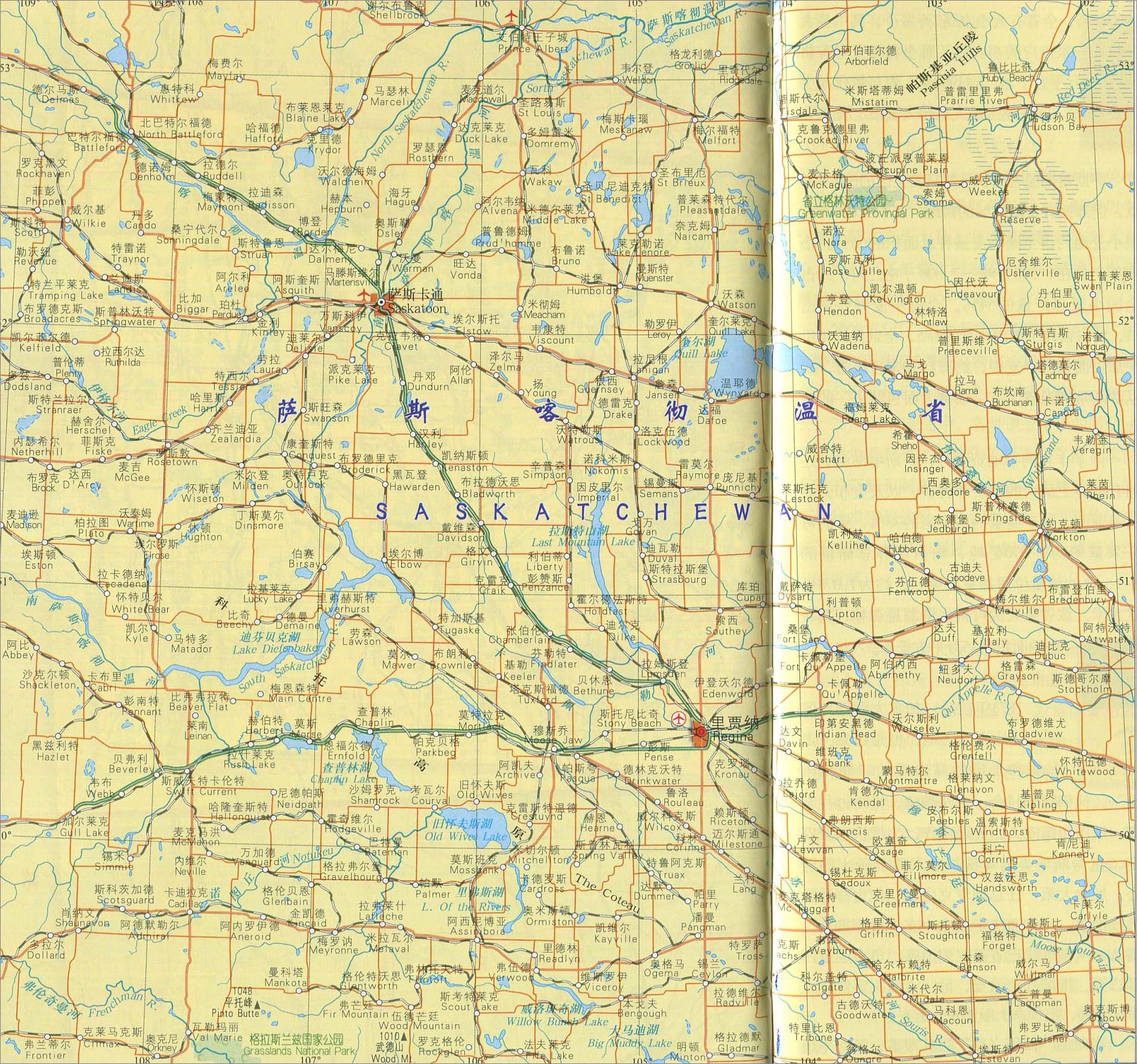 里贾纳-萨斯卡通附近地图